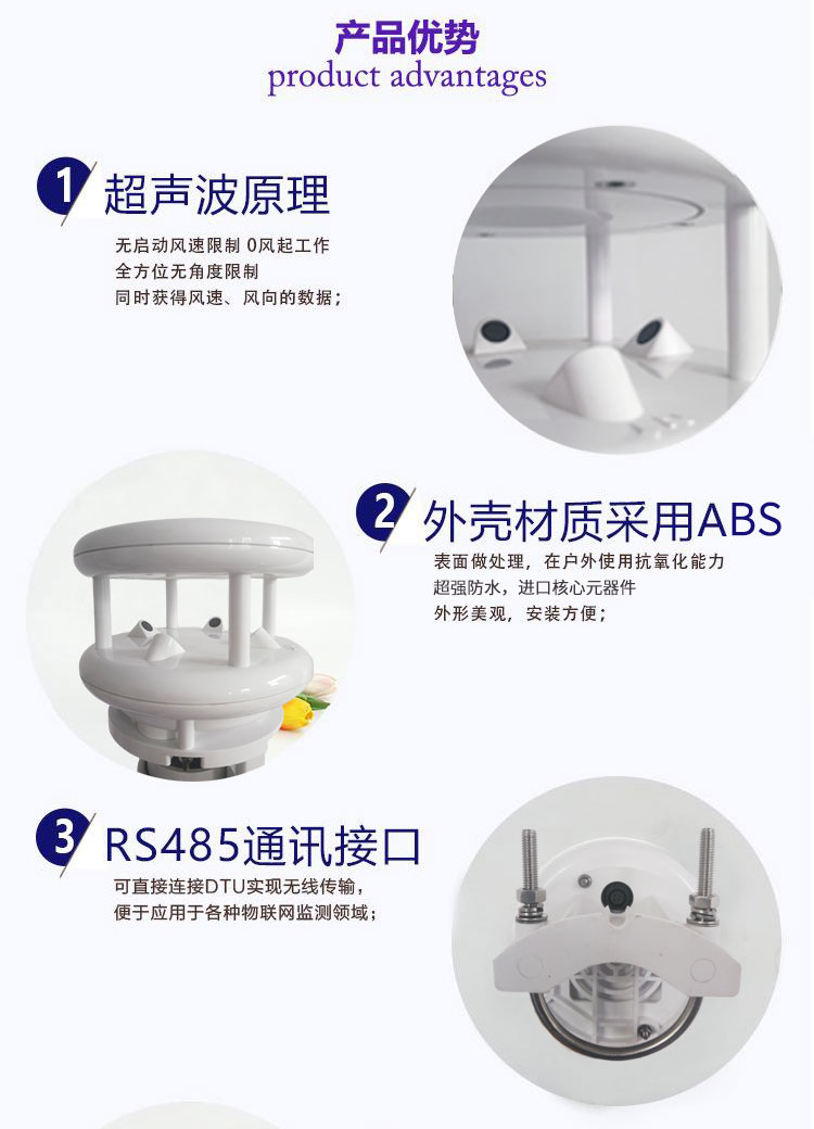 • 測量範圍風速:0~60m/s 風向:0~360°